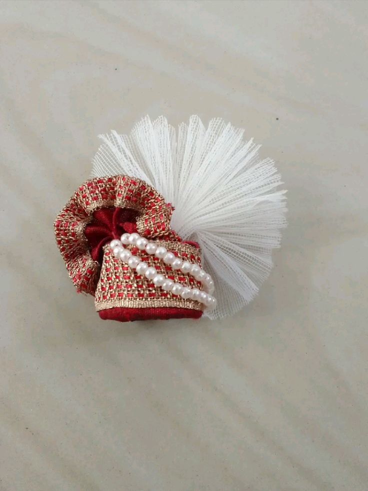 Designer Red & White Pearl Pagdi Mukut for Laddu Gopal Ji