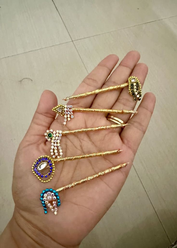 Enhance Laddu Gopal Ji shringar with this designer stone work bansuri set featuring multiple elegant designs, perfect for daily seva and festive decoration.